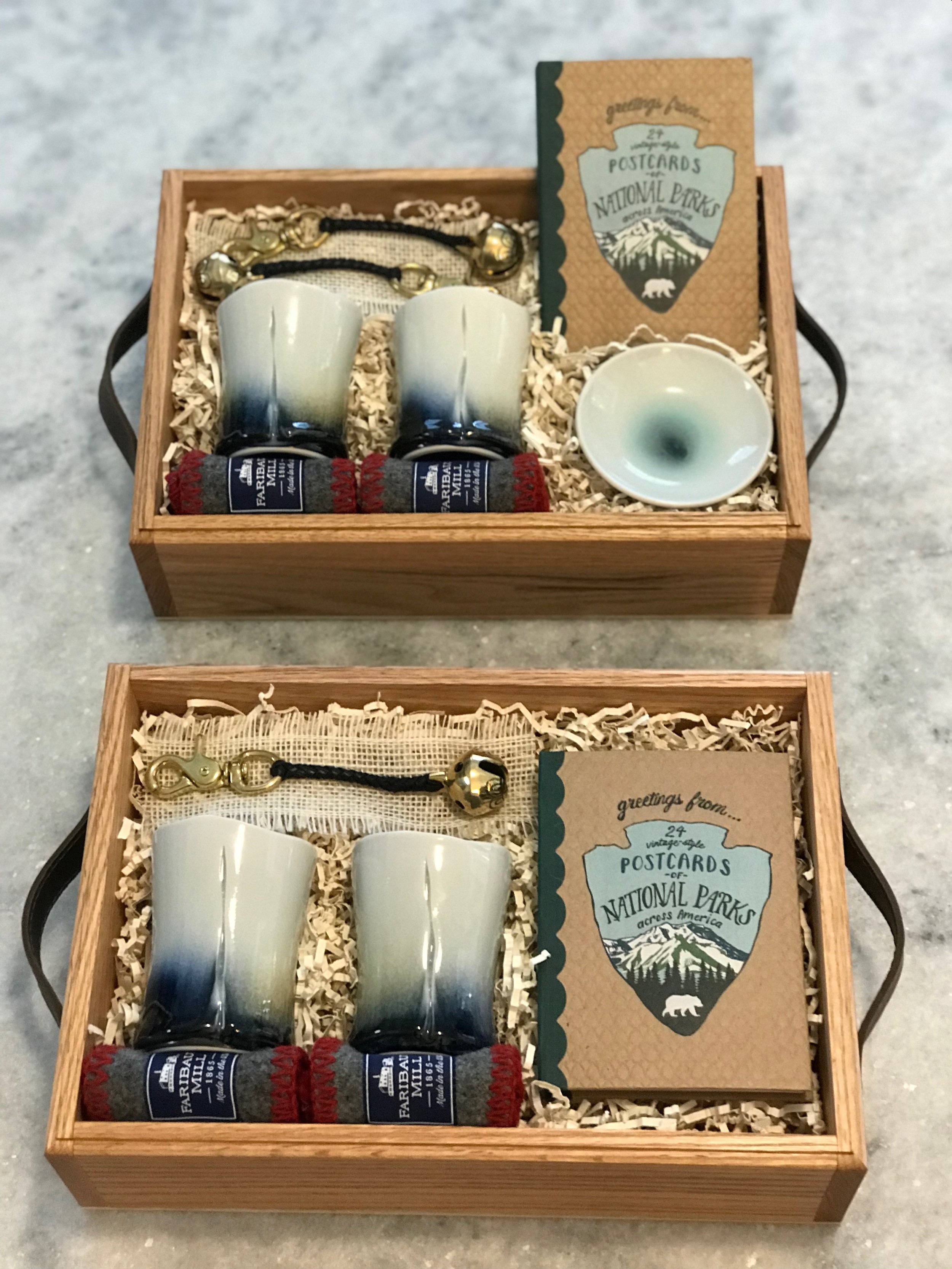 Bring back memories - Include at least one piece that lives beyond the sips and snacks as a joyful reminder of the experience. It could be engraved wood coasters, a festive pin, distinct ceramic cups, or a handwoven towel. Give your gifts in a handcrafted wood gift box to leave a lasting impression.